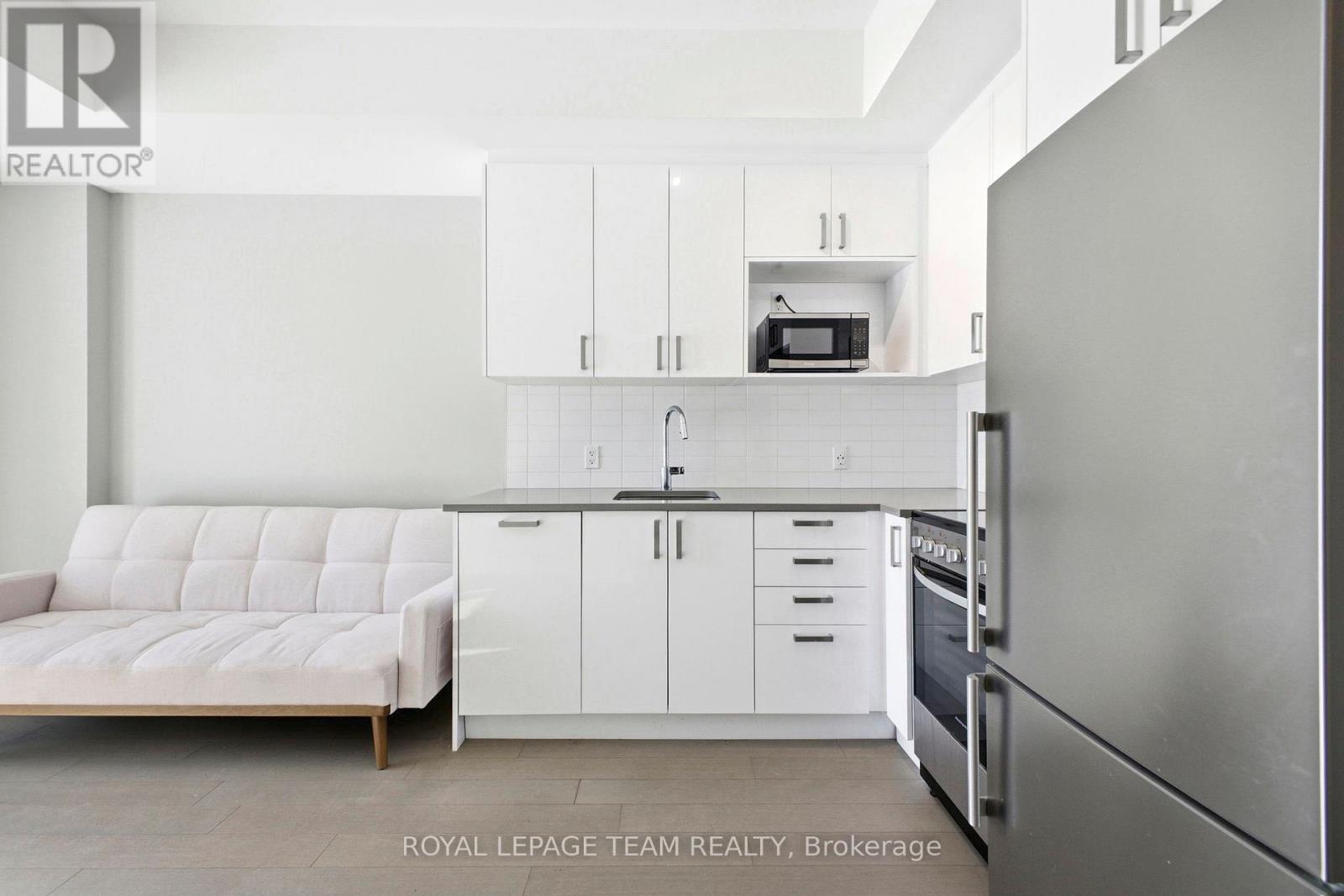 Welcome to Unit 209 at The Spencer in Greystone Village, where modern design meets an unbeatable Old Ottawa East lifestyle. Perfectly situated between the Rideau Canal and the Rideau River, you are steps to scenic bike paths, walking trails, cafés, restaurants, and vibrant Main Street amenities. This bright and efficiently designed bachelor features impressive 10 foot ceilings and oversized windows that fill the space with natural light. The contemporary kitchen offers sleek cabinetry, quartz countertops, stainless steel appliances, and clean modern finishes that feel both stylish and functional. The open layout is thoughtfully planned to maximize flexibility, allowing comfortable space for living, dining, and working from home. In unit laundry adds everyday convenience. The building amenities truly elevate the experience, including a fully equipped fitness centre and a stunning rooftop terrace with lounge areas, dining space, prep kitchen, gas fireplace, and beautiful river views. A guest suite is available for visiting family and friends. Located close to Saint Paul University and the University of Ottawa, and just minutes to downtown by bike, transit, or car, this condo is ideal for students, young professionals, or investors looking for a prime location. Modern. Efficient. Lifestyle driven. Unit 209 is city living done right. 1 pic is virtually staged (id:61832)